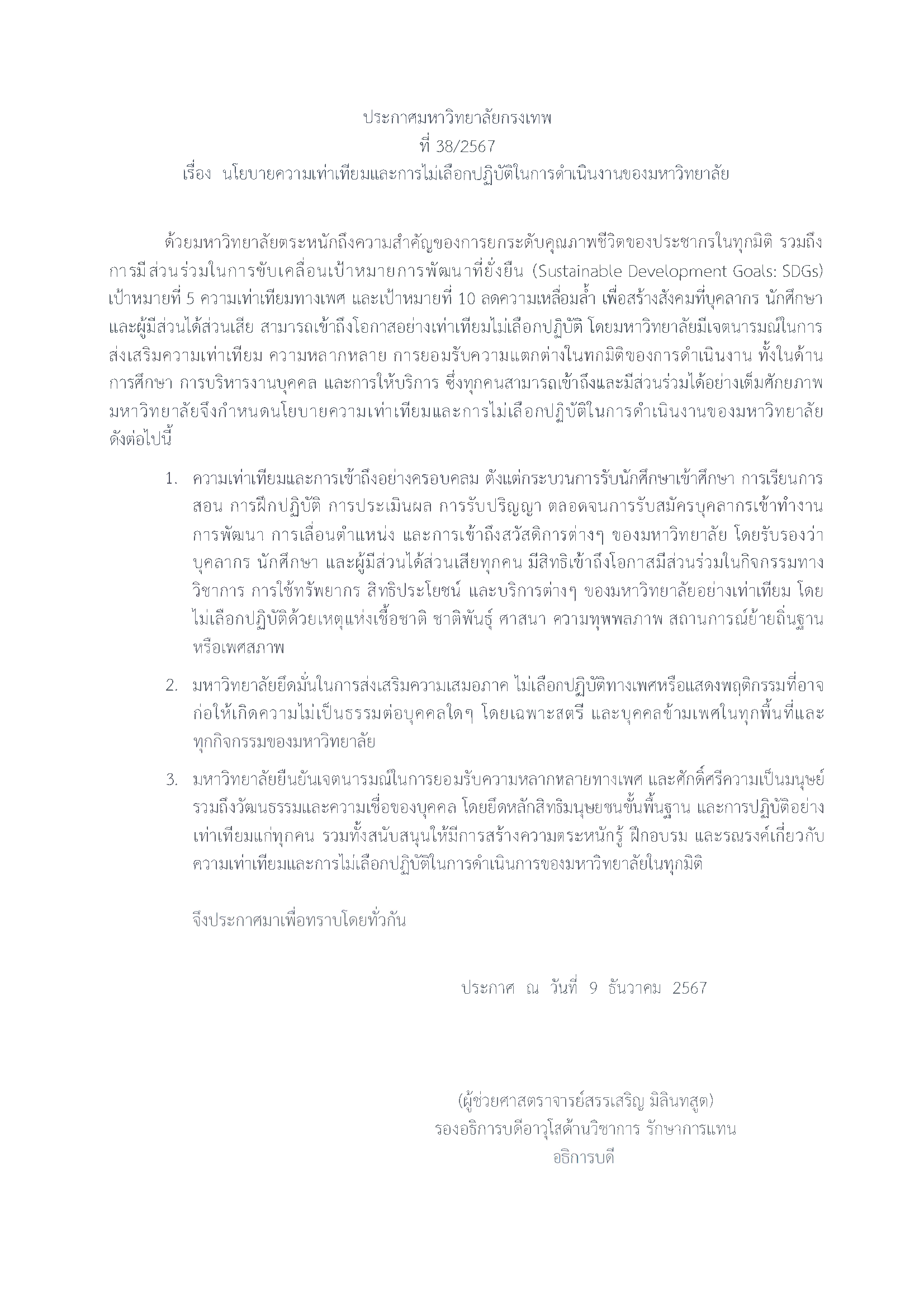 นโยบายความเท่าเทียมและการไม่เลือกปฏิบัติในการดำเนินงานของมหาวิทยาลัย ประกาศ ณ วันที่ 9 ธันวาคม พ.ศ. 2567 by นโยบายความเท่าเทียมและการไม่เลือกปฏิบัติในการดำเนินงานของมหาวิทยาลัย ประกาศ ณ วันที่ 9 ธันวาคม พ.ศ. 2567