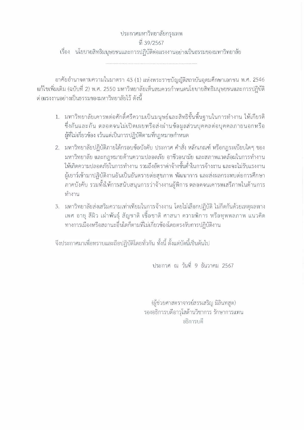 นโยบายสิทธิมนุษยชนและการปฏิบัติต่อแรงงานอย่างเป็นธรรมของมหาวิทยาลัย ประกาศ ณ วันที่ 9 ธันวาคม พ.ศ. 2567 by นโยบายสิทธิมนุษยชนและการปฏิบัติต่อแรงงานอย่างเป็นธรรมของมหาวิทยาลัย ประกาศ ณ วันที่ 9 ธันวาคม พ.ศ. 2567