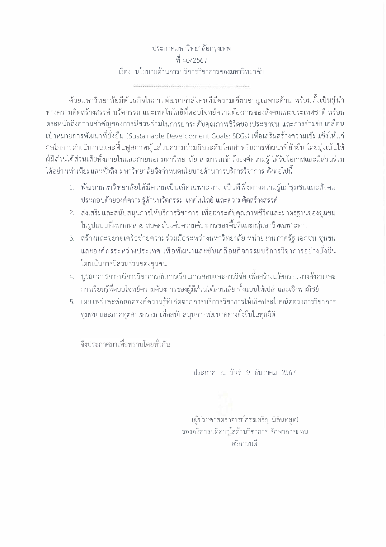 นโยบายด้านการบริการวิชาการของมหาวิทยาลัย ประกาศ ณ วันที่ 9 ธันวาคม พ.ศ. 2567 by นโยบายด้านการบริการวิชาการของมหาวิทยาลัย ประกาศ ณ วันที่ 9 ธันวาคม พ.ศ. 2567