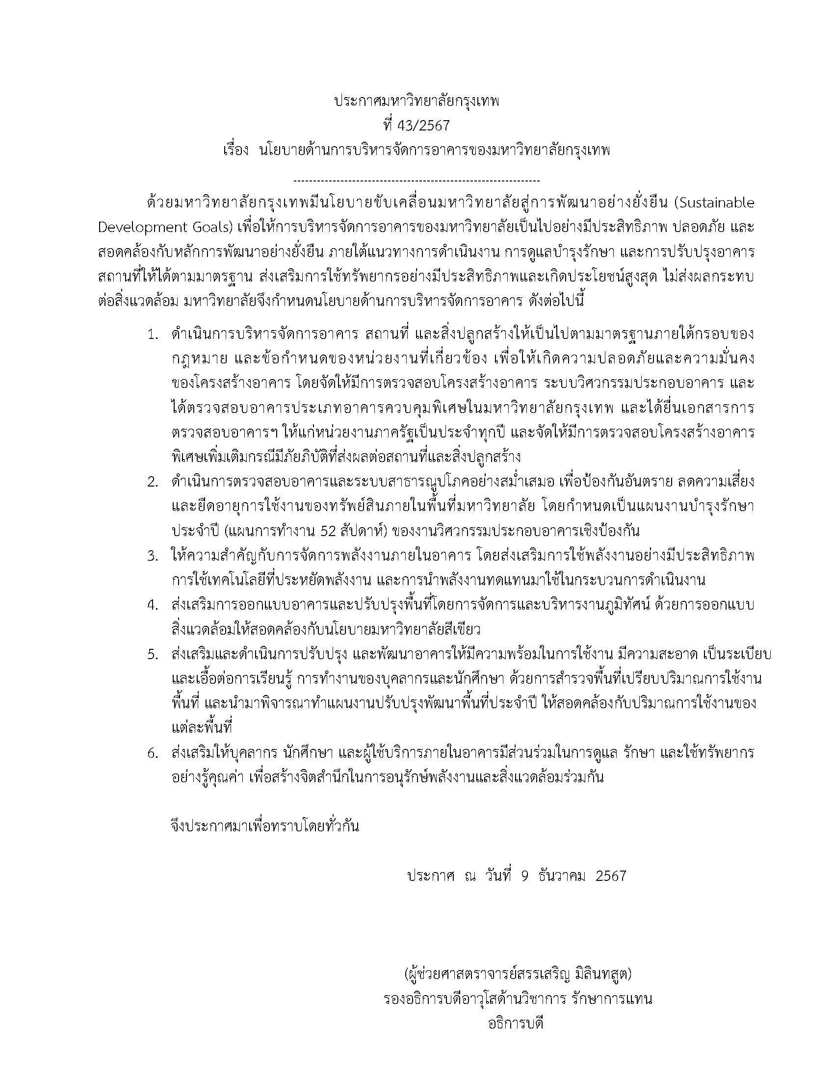นโยบายด้านการบริหารจัดการอาคารของมหาวิทยาลัยกรุงเทพ ประกาศ ณ วันที่ 9 ธันวาคม 2567 by นโยบายด้านการบริหารจัดการอาคารของมหาวิทยาลัยกรุงเทพ ประกาศ ณ วันที่ 9 ธันวาคม 2567