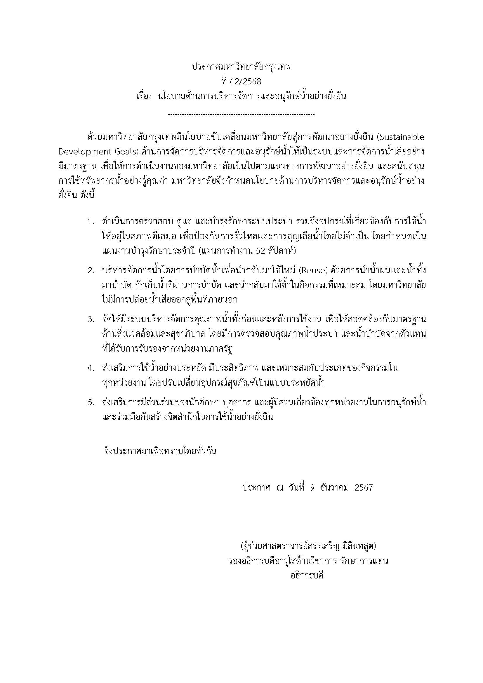 นโยบายด้านการบริหารจัดการอาคารของมหาวิทยาลัยกรุงเทพ ประกาศ ณ วันที่ 9 ธันวาคม 2567