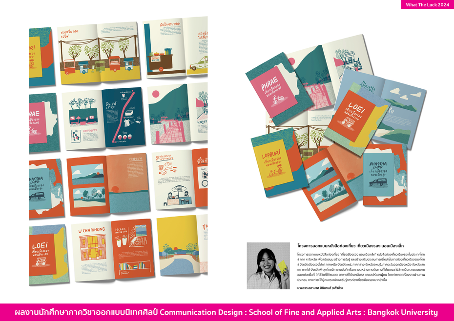 โครงการออกแบบหนังสือท่องเที่ยว “เที่ยวเมืองรอง นอนเมืองเล็ก” หนังสือท่องเที่ยวเมืองรองในประเทศไทย 4 ภาค 4 จังหวัด เพื่อสนับสนุน สร้างการรับรู้ และสร้างเสริมประสบการณ์ใหม่ๆในการท่องเที่ยวเมืองรอง โดย 4 จังหวัดเมืองรองได้แก่ ภาคเหนือ-จังหวัดแพร่, ภาคกลาง-จังหวัดลพบุรี, ภาคตะวันออกเฉียงเหนือ-จังหวัดเลย และ ภาคใต้-จังหวัดพัทลุง โดยมีการจดบันทึกเรื่องราวระหว่างการเดินทางที่ได้พบเจอ ไม่ว่าจะเป็นความสวยงาม ของแต่ละพื้นที่ วิถีชีวิตที่ได้พบเจอ อาหารที่ได้ลองลิ้มรส และเสน่ห์ของผู้คน โดยถ่ายทอดเรื่องราวผ่านภาพ ประกอบ ภาพถ่าย ให้ผู้คนตระหนักและรับรู้การท่องเที่ยวเมืองรองมากยิ่งขึ้นน
